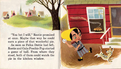 There's a few more ominous October leftovers in store for you coming up, but since it's November it is of course only right to remember Thanksgiving looming on the horizon, and that of course means food, Food, FOOOOD! And what's a holiday without MF'n PIES!! (thats a direct quote from Rootie Kazootie himself, yo!) Rootie, for the uninitiated, was a cute little puppet boy with his own TV show on NBC that ran for 4 years in the early 50's. Interested parties can check out this complete episode HERE after reading today's deliciously fine Tell-A-Tales story from 1953, which features the incredible art stylings of the great Mel Crawford! Yes my friends, if these illustrations don't make you instantly scream crazy for a piece of pineapple pie-- nothing will, gosharootie!