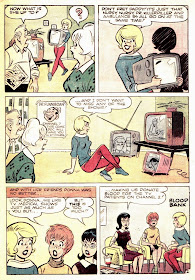 The last 9 pages of Archie's Mad House #35 (1964) takes some hilarious pokes at the incredibly popular trend of tv medical shows of the time, as well as at the rabid fans who went seriously deliriously overboard in their obsessions with the genre. Typical fun art and goofball writing, the first scan below features more of the fabulously unique art by the unknown artist of our last post.
